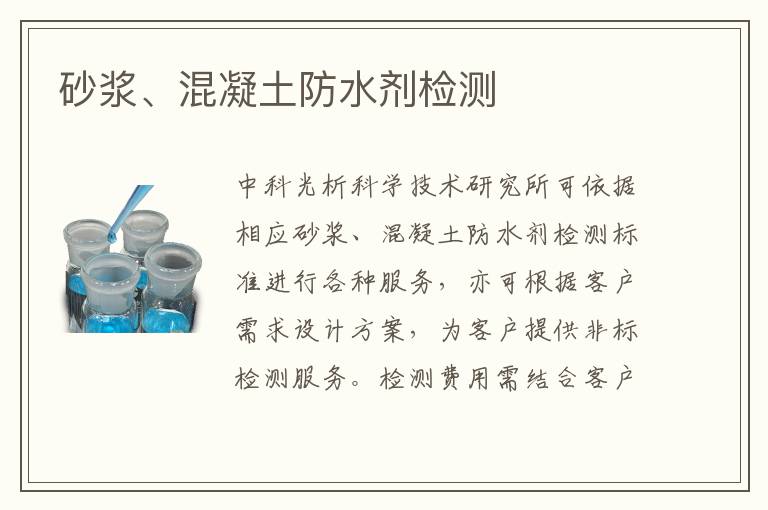 關(guān)鍵詞:砂漿、混凝土防水劑項(xiàng)目報(bào)價(jià),砂漿、混凝土防水劑測(cè)試機(jī)構(gòu),砂漿、混凝土防水劑測(cè)試標(biāo)準(zhǔn)