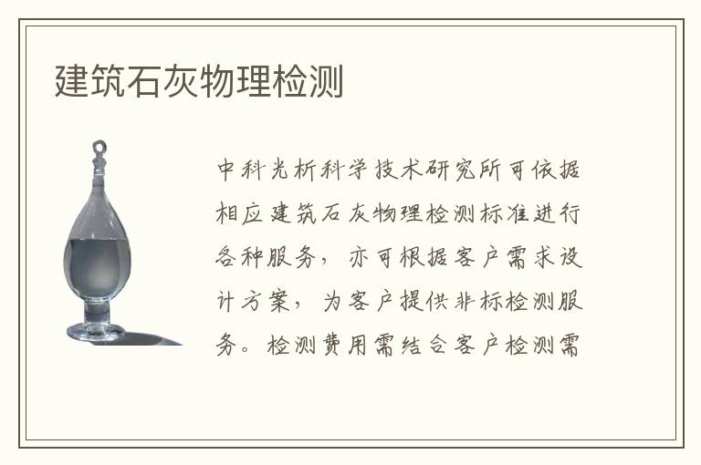 關(guān)鍵詞:建筑石灰物理測(cè)試案例,建筑石灰物理測(cè)試方法,建筑石灰物理測(cè)試周期