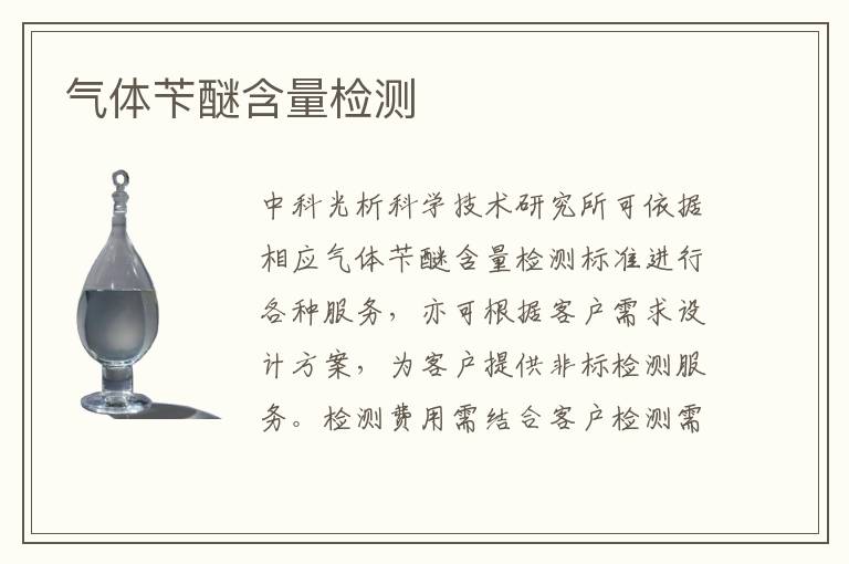 關(guān)鍵詞:氣體芐醚含量測試周期,氣體芐醚含量測試儀器,氣體芐醚含量測試方法
