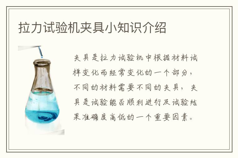 夾具是拉力試驗機中根據(jù)材料試樣變化而經(jīng)常變化的一個部分,不同的材料需要不同的夾具,夾具是試驗能否順利進行及試驗結(jié)果準確度高低的一個重要因素。由于拉力試驗機可以測多種產(chǎn)品的性能,由于各種試樣的結(jié)構(gòu)、外觀不同,就形成了夾具結(jié)構(gòu)的特殊性,所以,合理正確的使用夾具有利于試驗順利的進行。